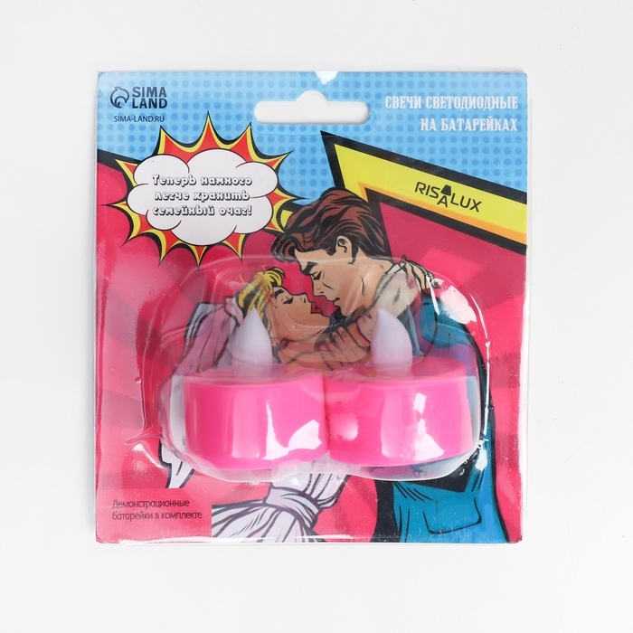 Светодиодные свечи, ночники LED RISALUX «Семейный очаг» набор 2 шт., розовые, RGB 3.5×3.5×4 см
