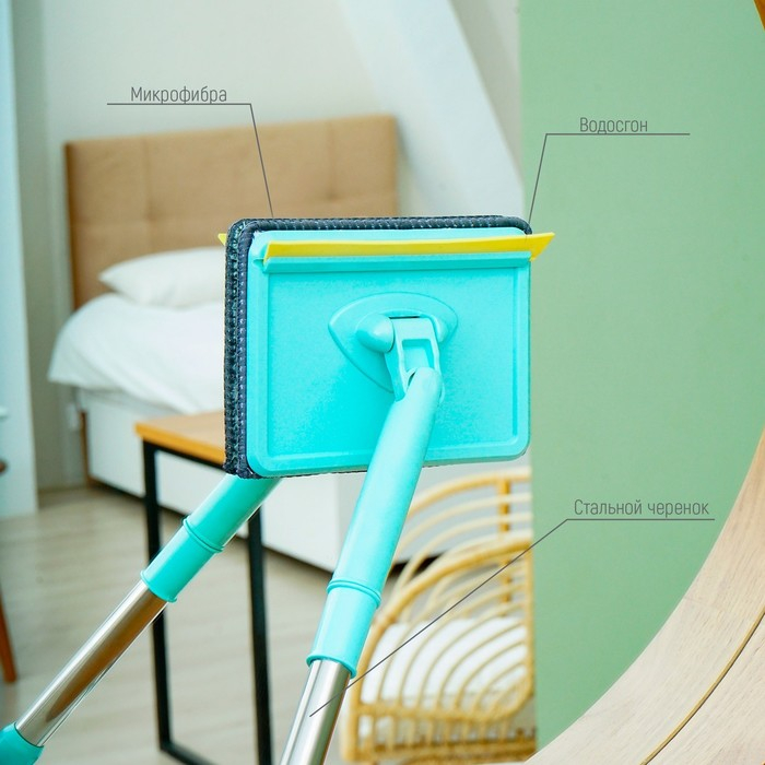 Щётка для окон Доляна, телескопическая ручка 54(86) см, поворотная головка, насадка из микрофибры 14×16 см, цвет синий