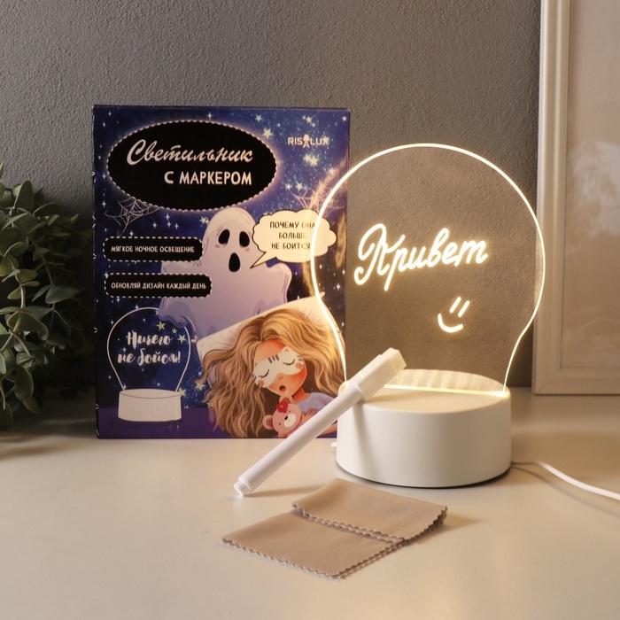 Светильник "Ничего не бойся!" маркер + протирка LED RGB от USB 10х13,5х18 см