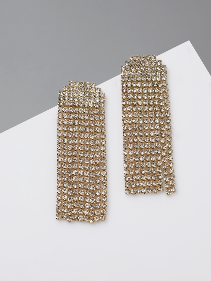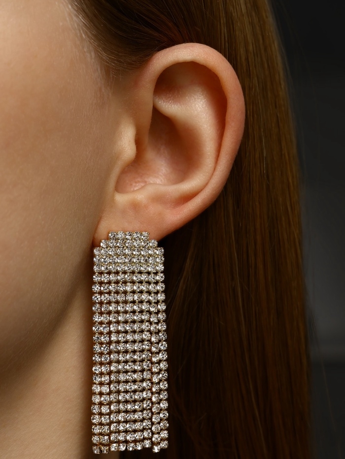 Серьги висячие со стразами «Водопад» мягкий квадрат, цвет белый в золоте