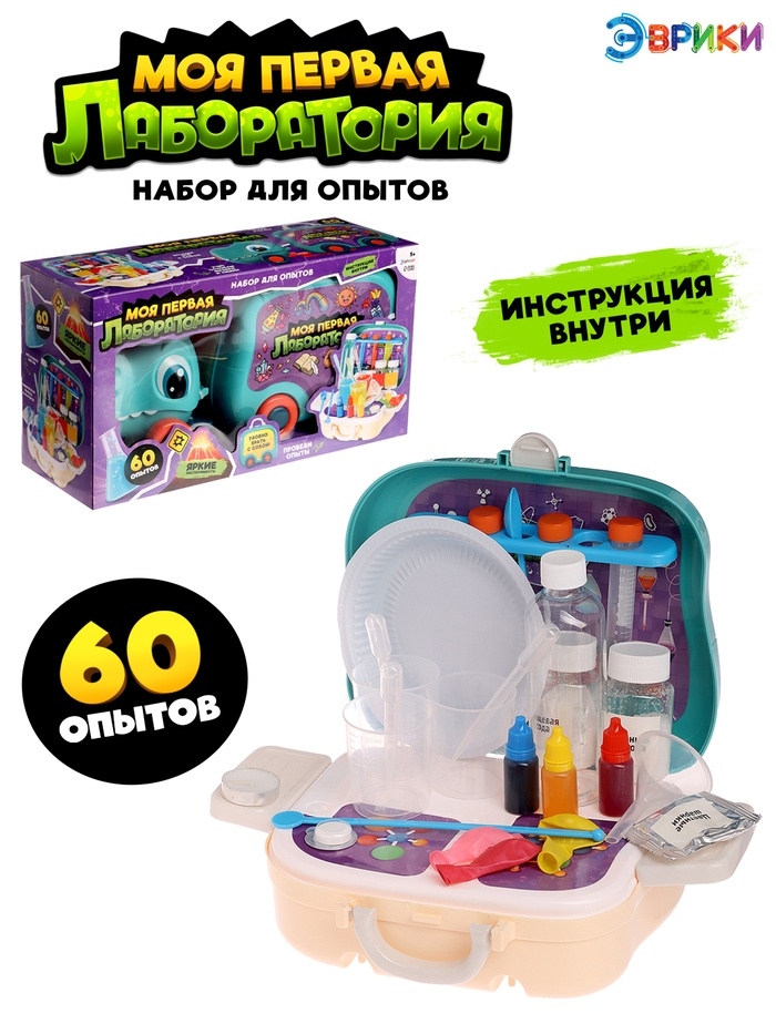ЭВРИКИ Набор для опытов "Моя первая лаборатория", машинка, 60 опытов