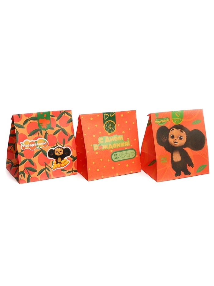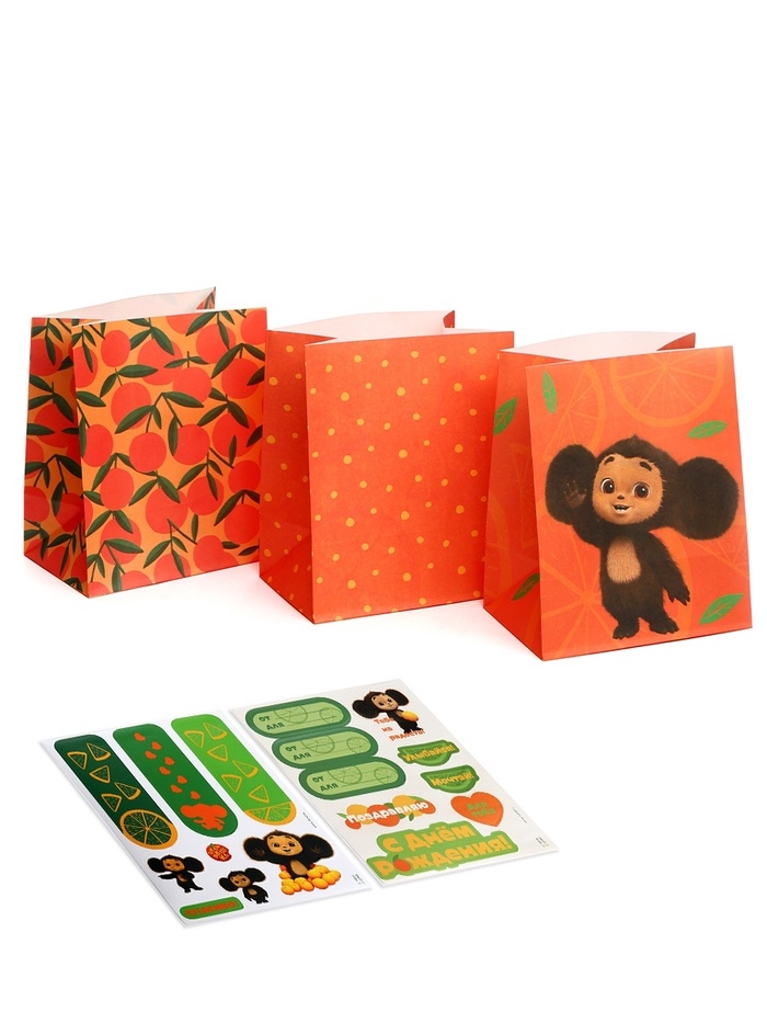 Набор крафтовых пакетов со стикерами, Чебурашка, 18х22х12 см