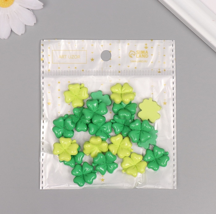 Декор для творчества пластик "Клевер" набор 20 шт 1,8х1,8х0,6 см