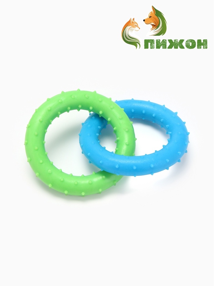Игрушка жевательная суперпрочная "Два кольца", зелёная/синяя