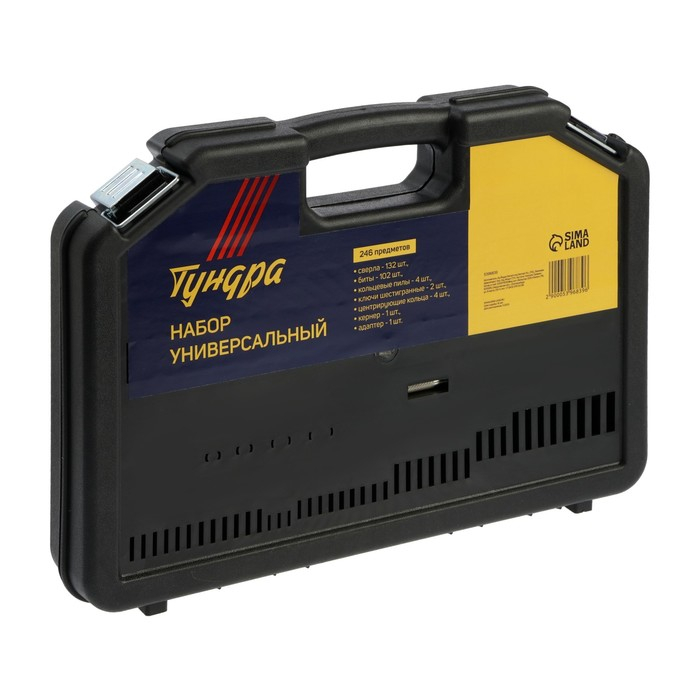 Набор универсальный ТУНДРА, сверла по дереву, металлу, бетону, биты, кернер 246 предметов