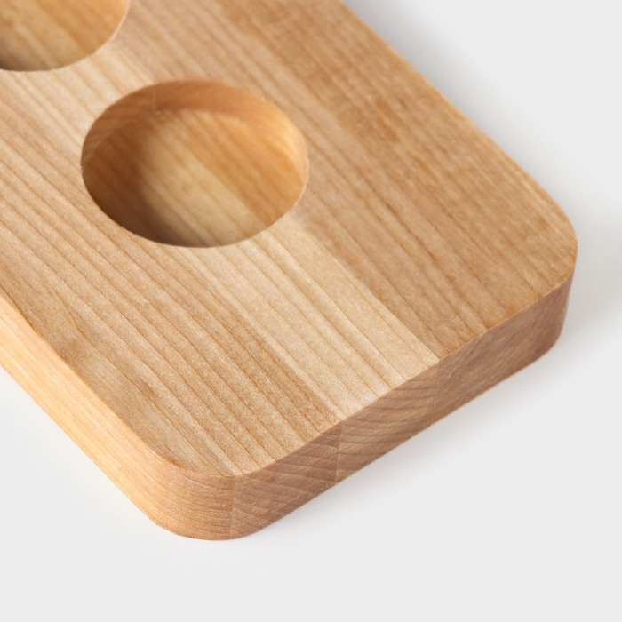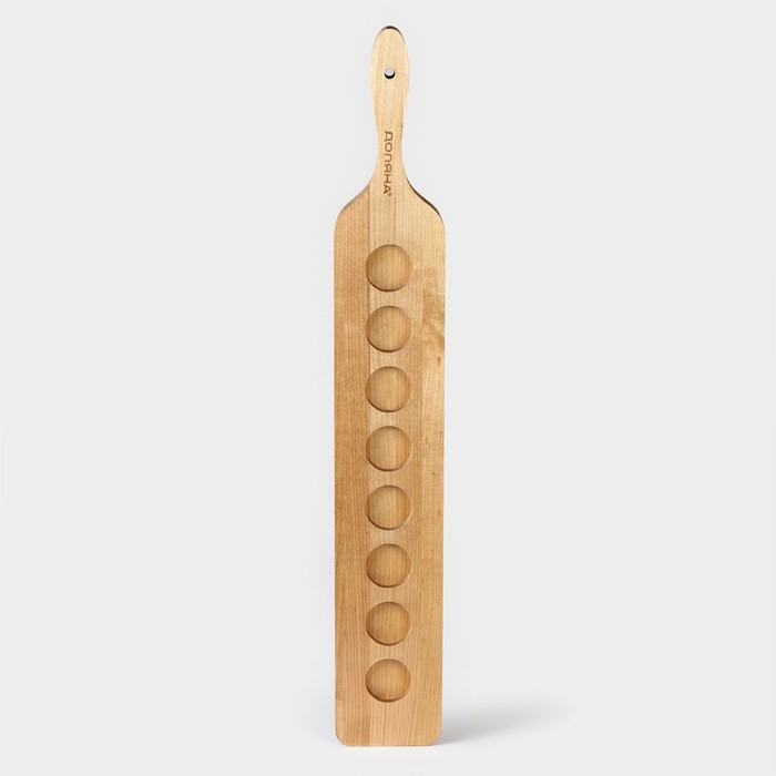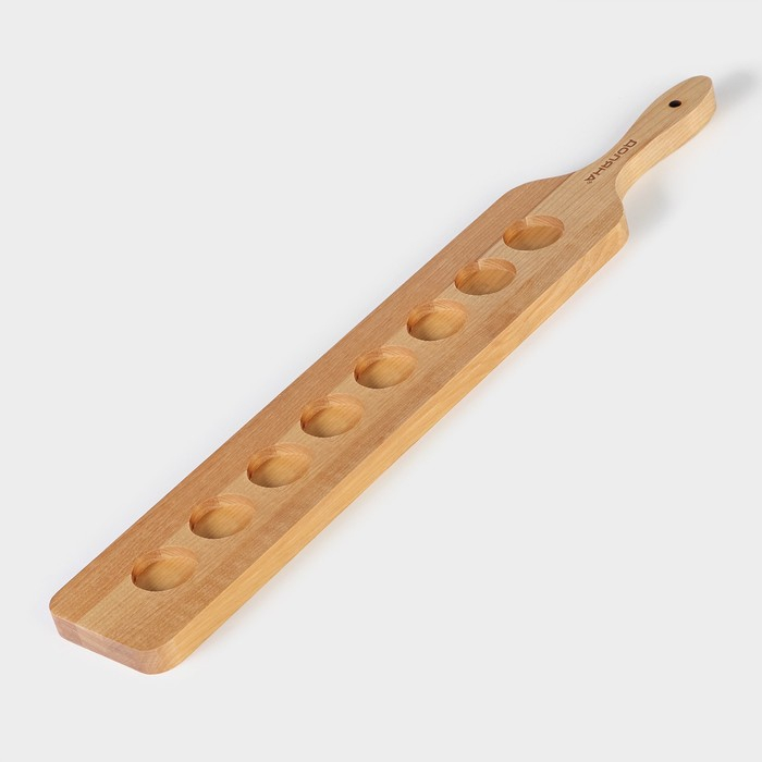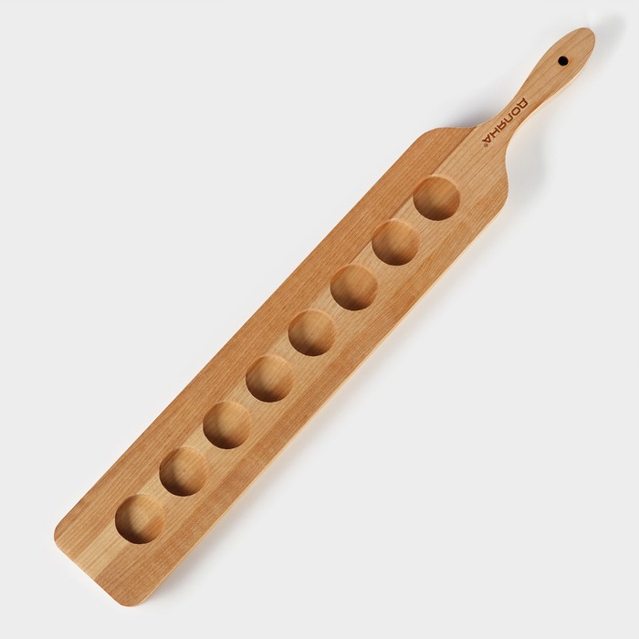 Доска для подачи шотов с ручкой, 60×9×1,8 см, на 8 рюмок, диаметр ячеек 3,9 см, с пропиткой, берёза