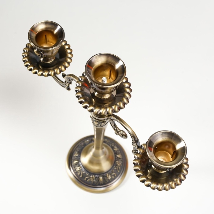 Подсвечник металл на 3 свечи "Медальон" цвет бронза 26,5х27х9,5 см