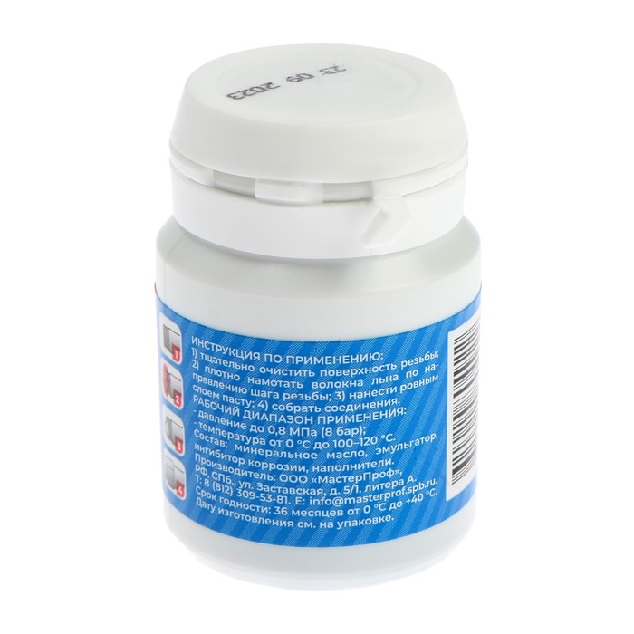 Комплект уплотнительной пасты со льном MasterProf применяется для уплотнения резьбовых соединений в трубопроводных системах горячей и холодной воды, системах отопления, а также пара под низким давлением.