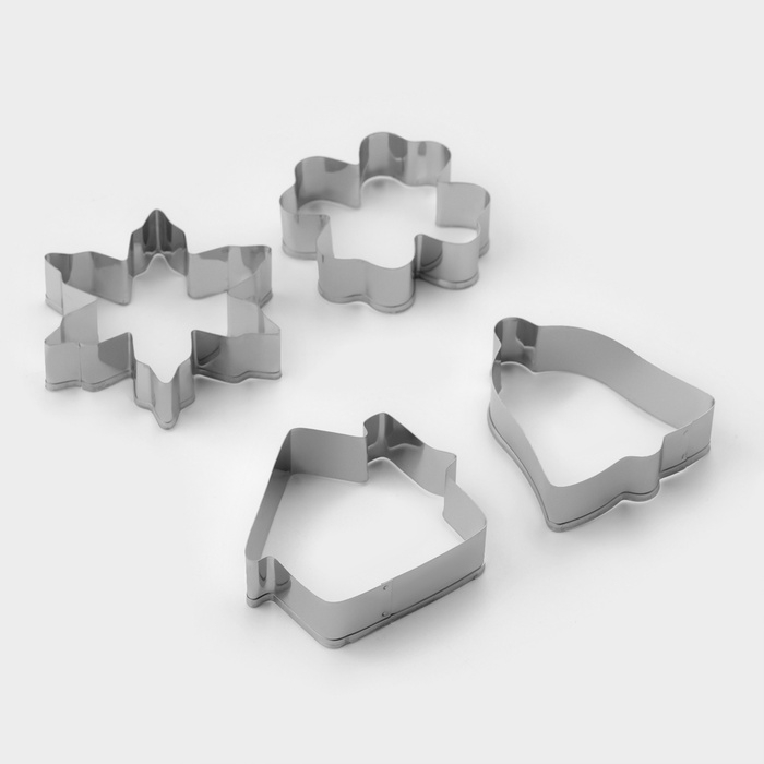 Набор форм для вырезания печенья Доляна «Снежинка. Домик. Колокольчик. Клевер», 4 шт