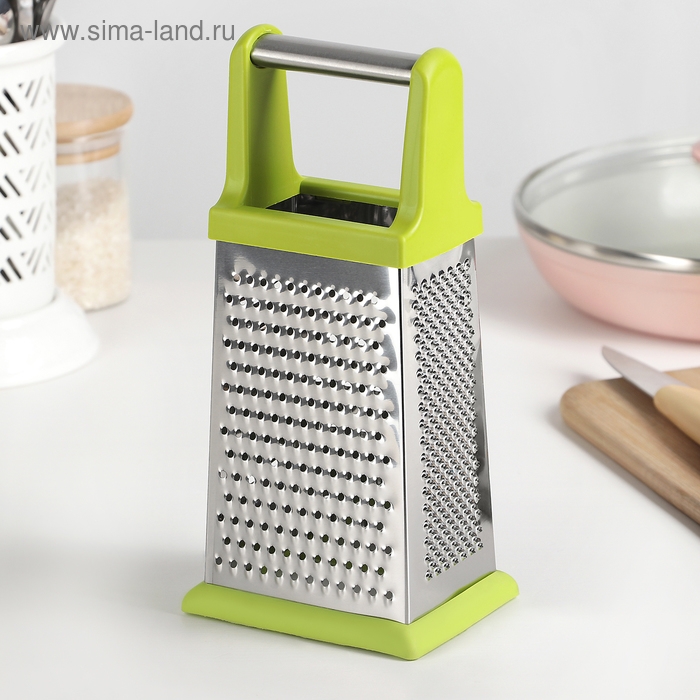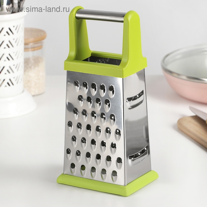 Тёрка четырёхгранная Доляна «Энергия», 10×8×20 см, прорезиненное дно, зелёная