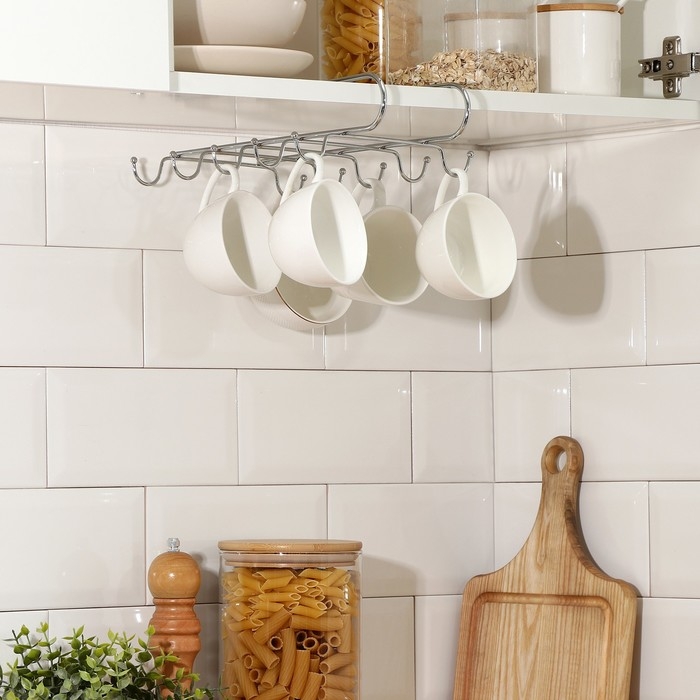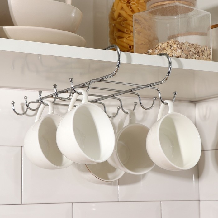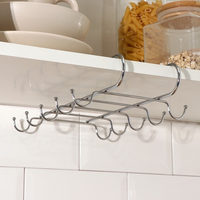 Держатель для кружек подвесной на 8 предметов Доляна, 27,5×20×7,5 см, на толщину полки 3,5 см, цвет хром