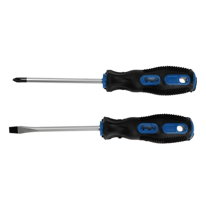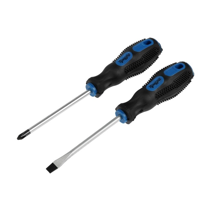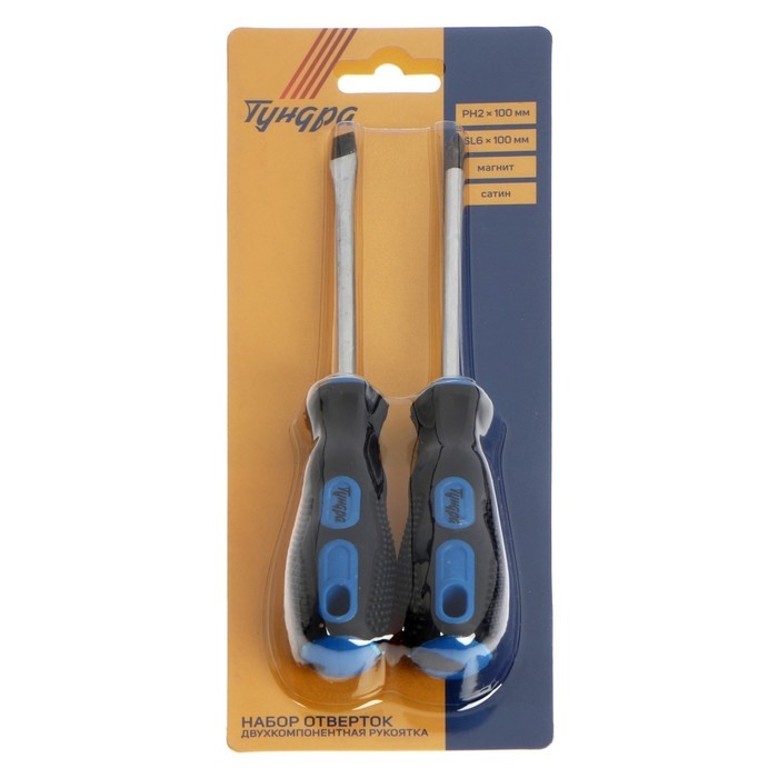 Набор отверток ТУНДРА, сатин, магнит, двухкомпонентные рукоятки, PH2/SL6 х 100 мм, 2 шт.