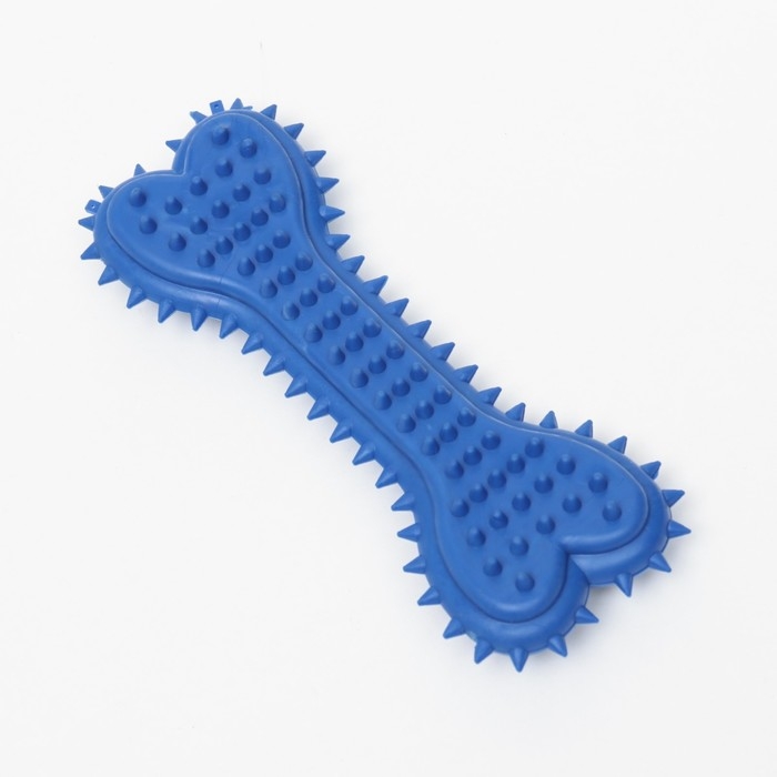 Игрушка жевательная литая "Кость для массажа" большая, 15 х 6 х 2,5 см, синяя