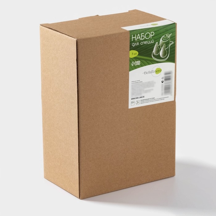 Набор фарфоровый для специй BellaTenero, 3 предмета: солонка 80 мл, перечница 80 мл, сахарница с ложкой 300 мл, цвет белый