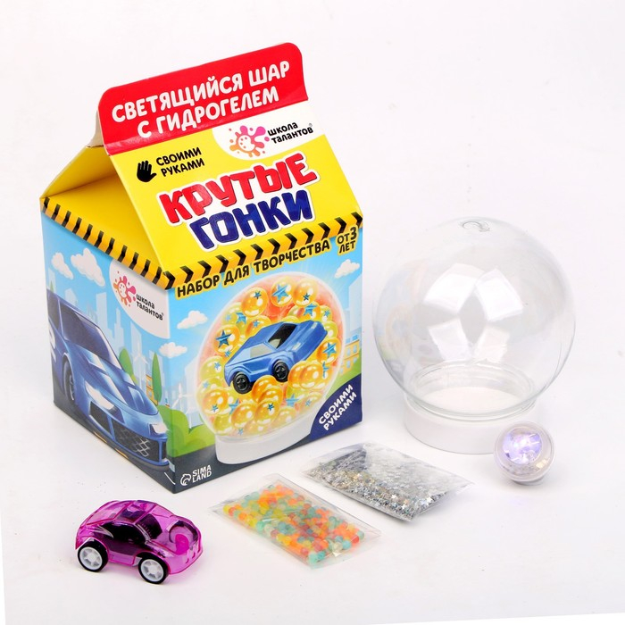 Набор для творчества «Светящийся шар с гидрогелем», машинка цвета МИКС (зелёный, розовый, голубой, красный)