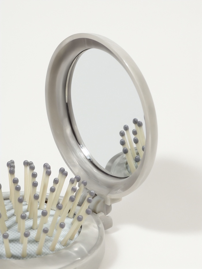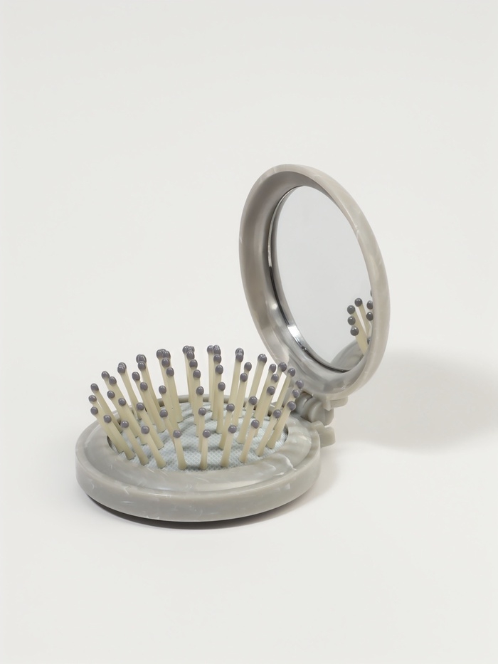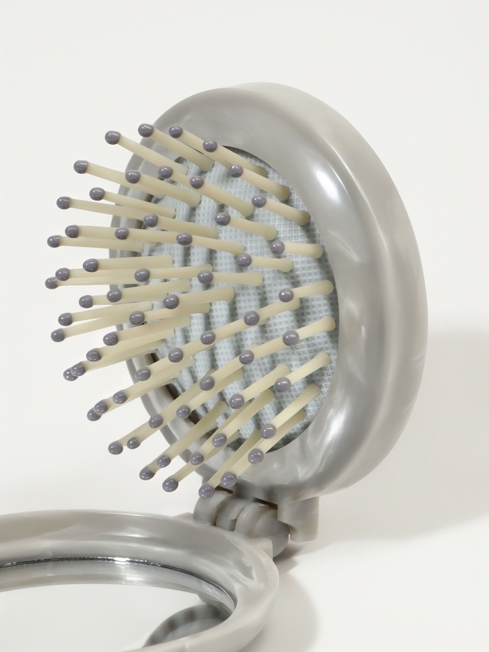 Расческа массажная складная круг МРАМОР d7/7,5*7*2,5см пластик серый пакет QF