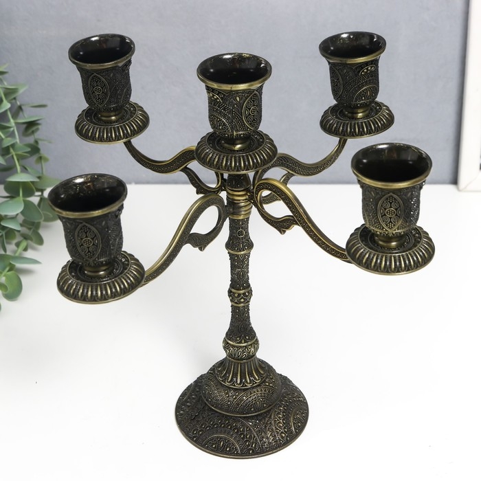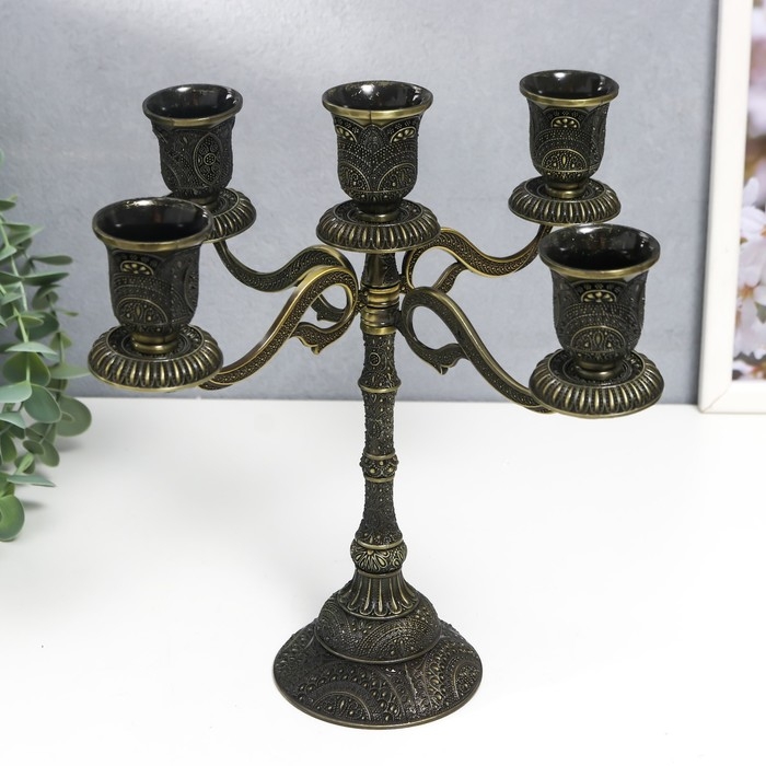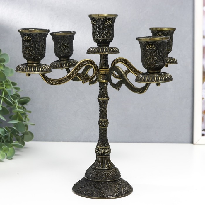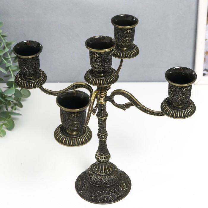 Подсвечник металл на 5 свечей "Раджа" бронза 22,5х23х23 см