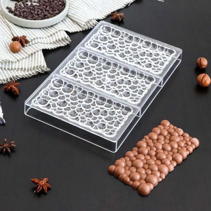 Форма для шоколада и конфет KONFINETTA «Воздушный», 3 ячейки, 27,5×17,5×2,5 см, ячейка 15,3×7,5×0,8 см