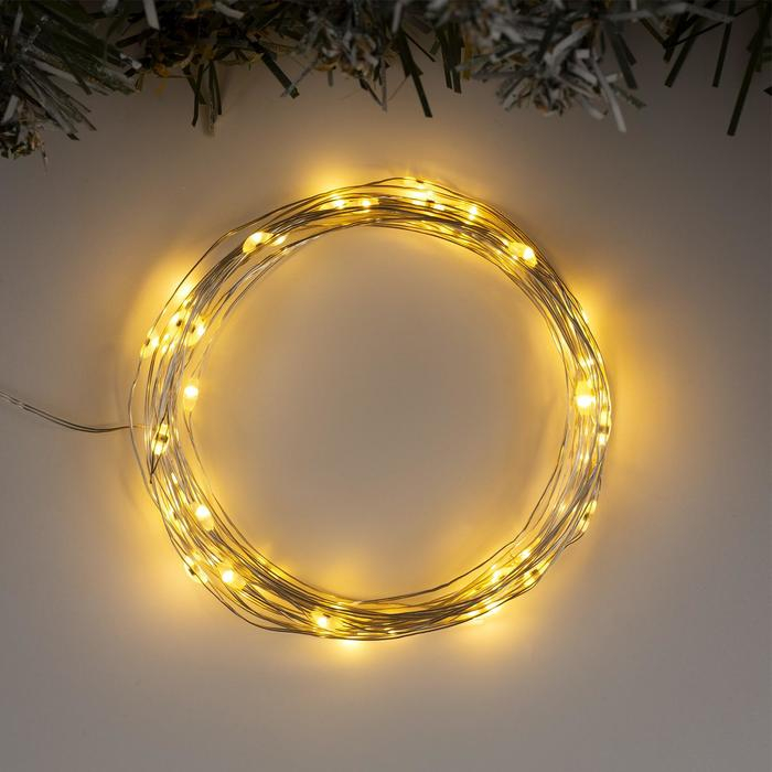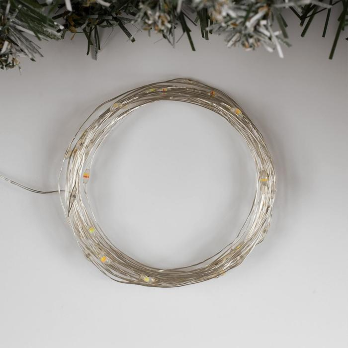 Гирлянда «Нить» 5 м роса, IP20, серебристая нить, 50 LED, 2 режима, батарейки AAх3 (нет в комплекте), свечение тёплое белое / мульти