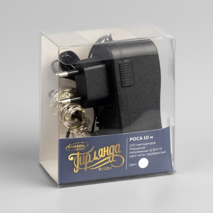 Гирлянда «Нить» 10 м роса, IP20, серебристая нить, 100 LED, свечение белое, мерцание белым, 12 В