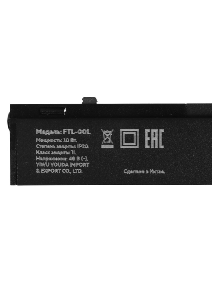 Трековый светильник, серия "Flat" FTL-001, 10Вт, 48В, 3000К, IP20, 300мм, черный