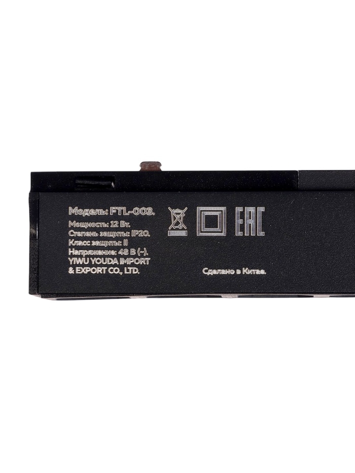 Трековый светильник, серия "Flat" FTL-003, 12Вт, 48В, 4000К, IP20, 260мм, черный