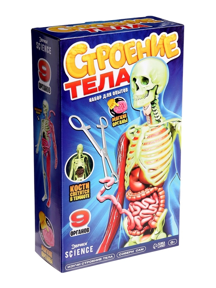 ЭВРИКИ Набор для опытов "Строение тела", светящееся с мягкими органами