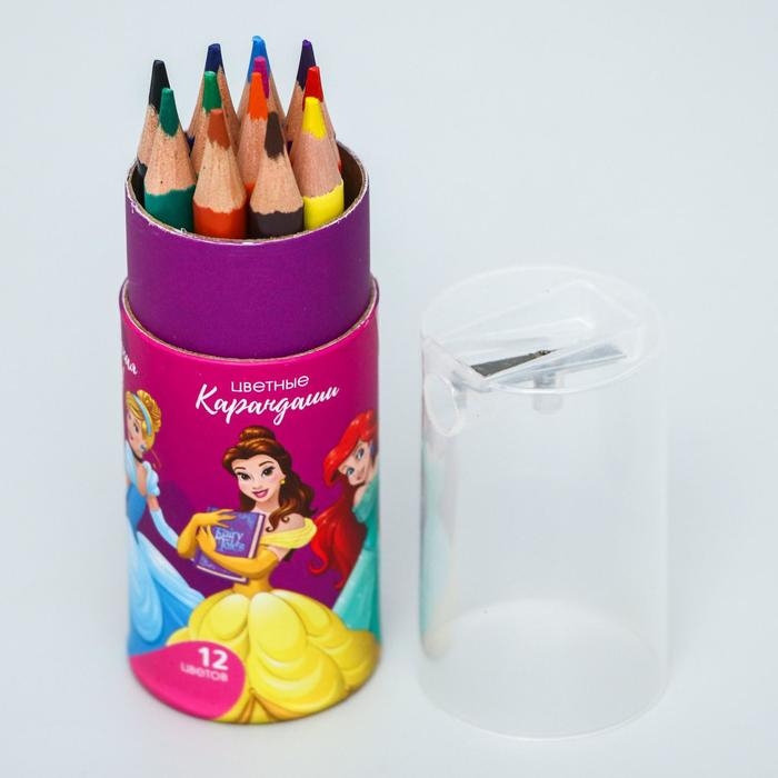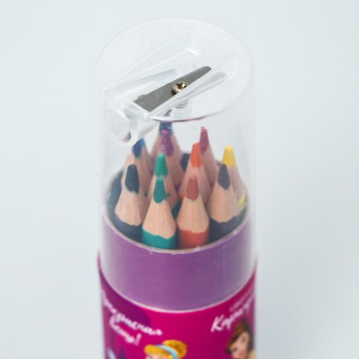 Цветные карандаши в тубусе, 12 цветов, Принцессы