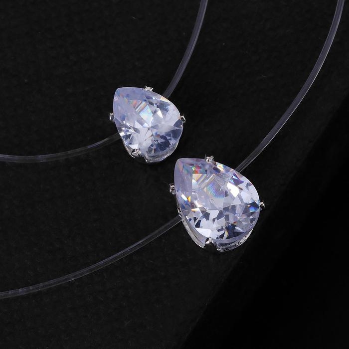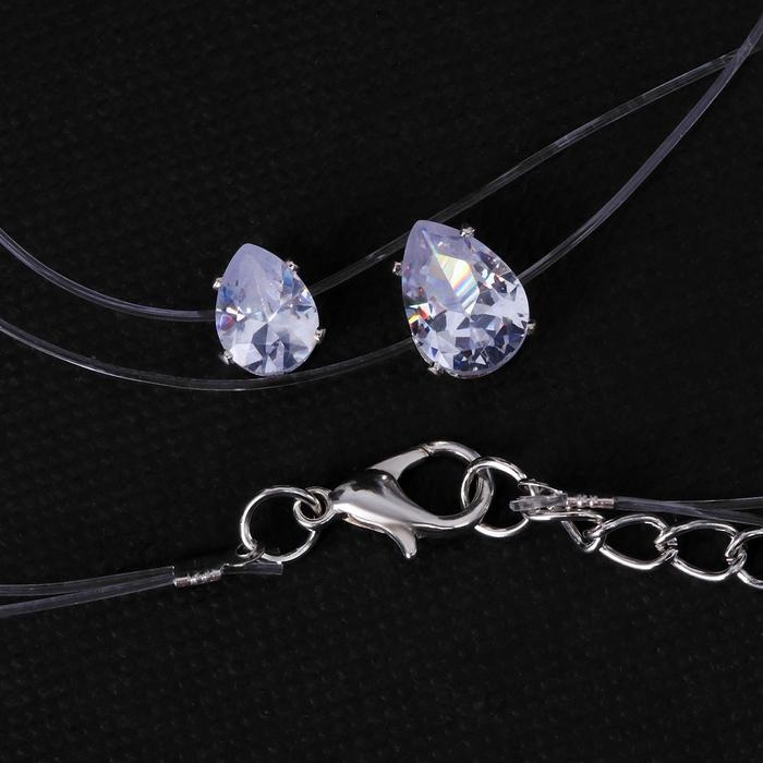 Кулон «На леске» двойная слеза, цвет белый в серебре, 40 см