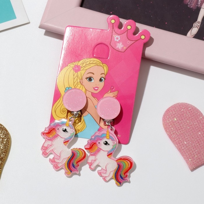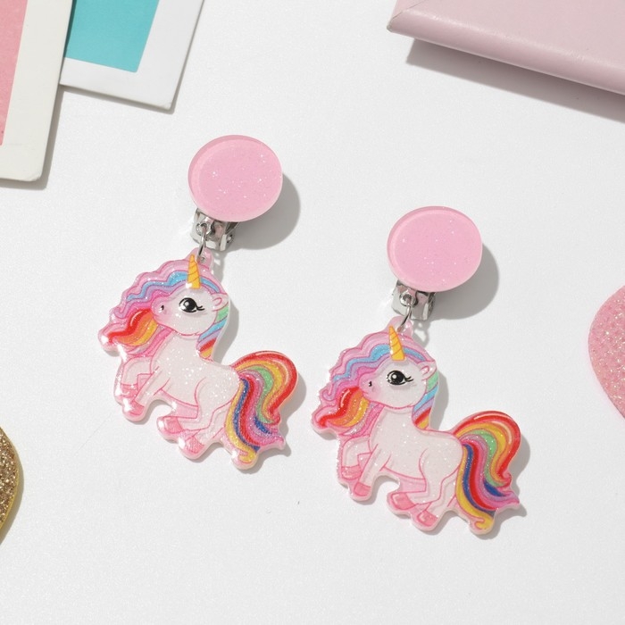 Серьги-клипсы детские «Выбражулька» сказка, единорог яркий, цветные