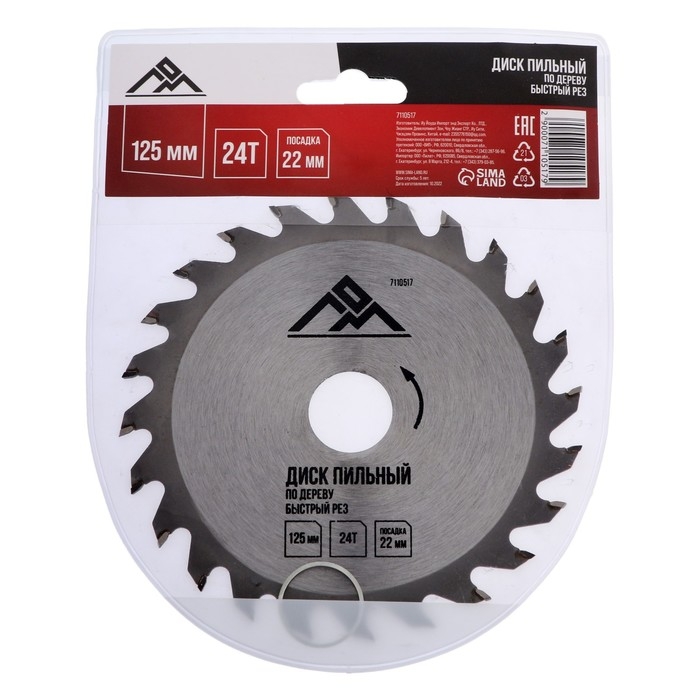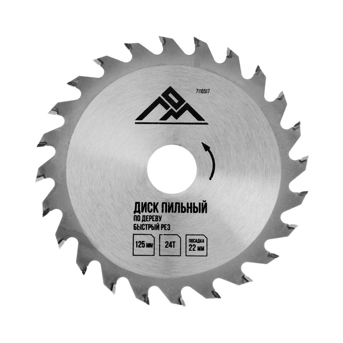 Диск пильный по дереву ЛОМ, быстрый рез, 125 х 22 мм, 24 зуба