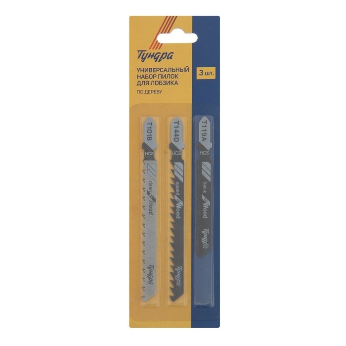 Универсальный набор пилок для лобзиков ТУНДРА, по дереву, 3 шт.