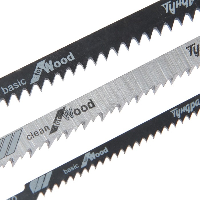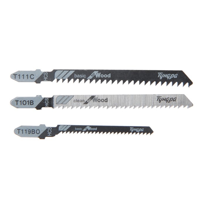 Набор пилок для лобзиков ТУНДРА, по дереву, прямой, фигурный и быстрый рез, HCS, 3 шт.