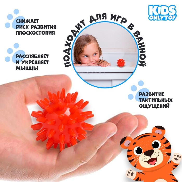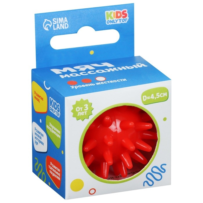 Мяч массажный ONLYTOP «Ёжик», d=4,5 см, цвет красный