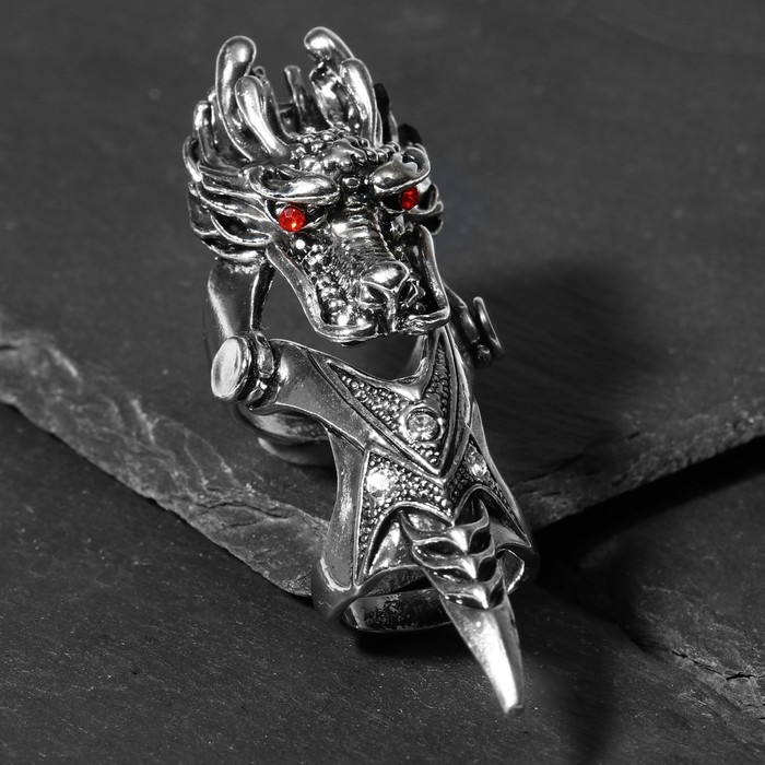 Кольцо «Коготь» дракон с красными глазами, цвет красный в чернёном серебре, 20 размер