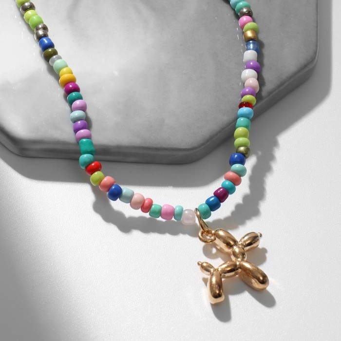 Кулон «Собачка» из воздушных шаров, бисер, разноцветный, 41см