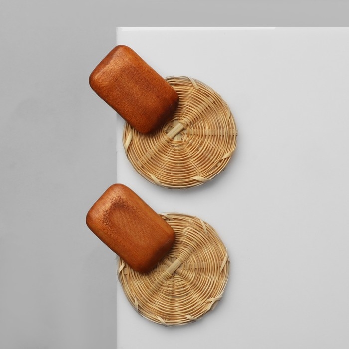 Серьги из дерева «Ваканда» стиль, плетёнка, цвет бело-коричневый