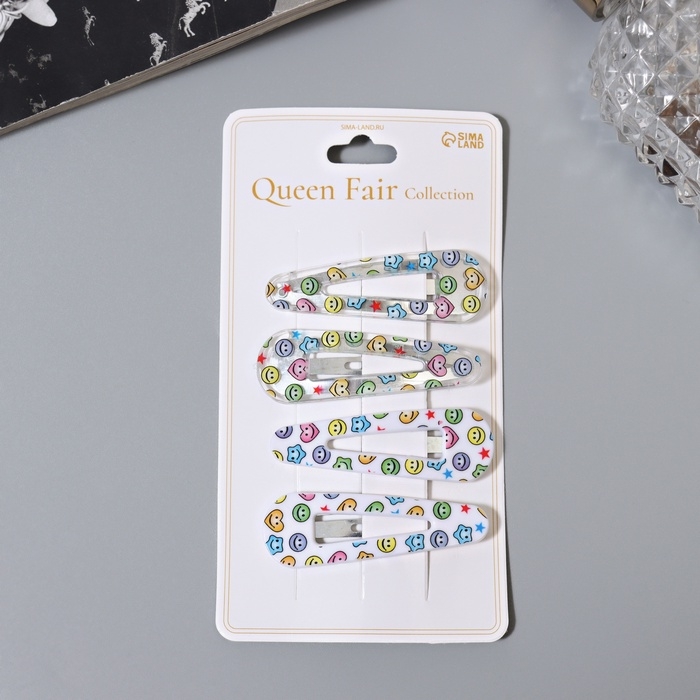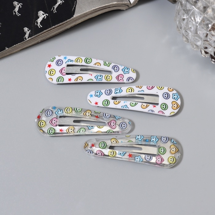 Невидимка для волос "Глория" (набор 4 шт) улыбки, 5 см
