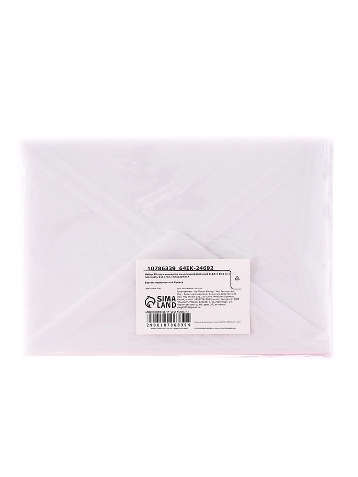 Набор 30 штук конвертов из кальки прозрачные (11.5 х 16.5 см), плотность 113 г/кв.м