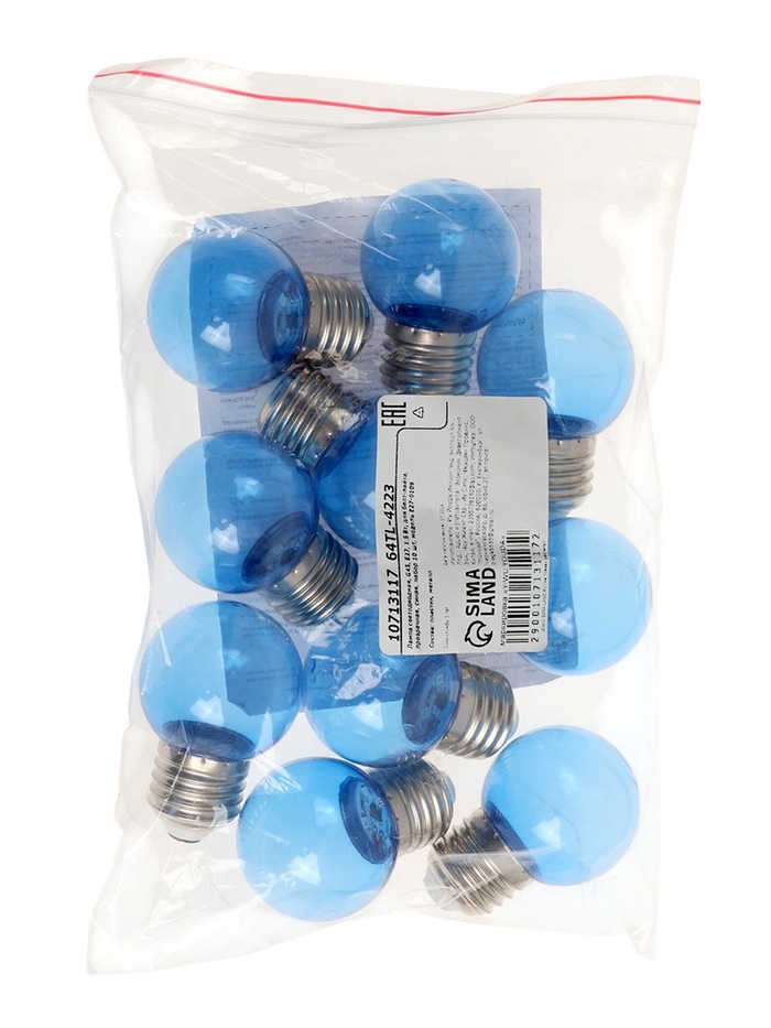 Лампа светодиодная, G45, Е27, 1.5 Вт, для белт-лайта, прозрачная, синяя, набор 10 шт