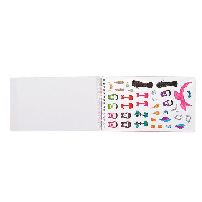 Малышка сможет самостоятельно создавать стильные образы, в этом ей поможет «Альбом дизайнера». Ребёнку нужно вырезать яркие аксессуары и модную одежду, а затем нарядить куколок.