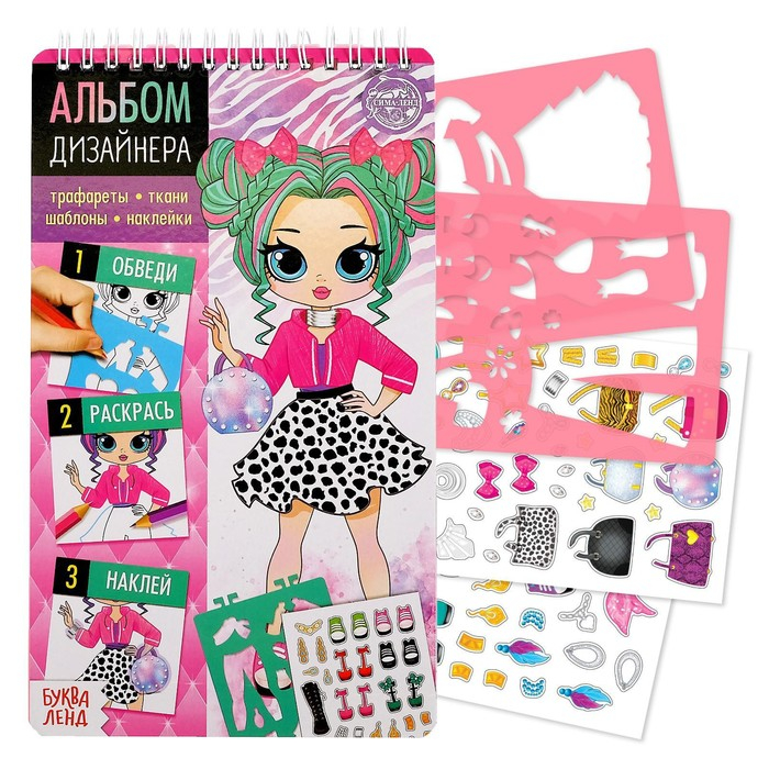 Книга с наклейками и трафаретами «Альбом дизайнера. Стильные девчонки»