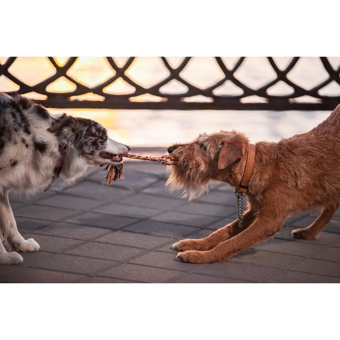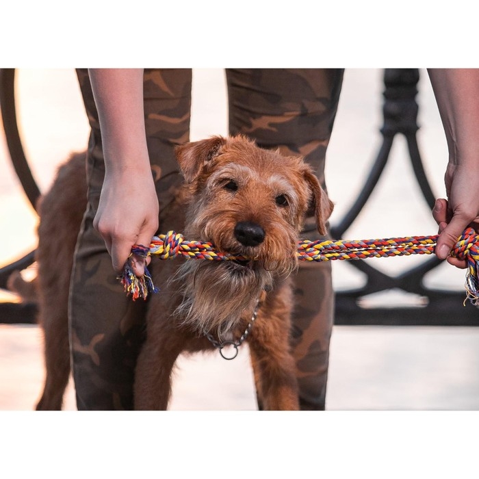 Одна из самых популярных игрушек для собак всех пород. Изготовлена из 100% хлопка. Такая игрушка не только увлекательна, но и полезна для здоровья животного - во время игры хорошо очищает десны и зубы от налета.