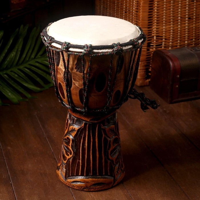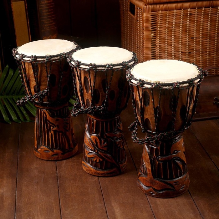 Барабаны Джембе популярны и в XXI веке среди молодежи, ценителей африканской культуры и хорошего ритма. «Шум острова» выполнен вручную индонезийскими мастерами-ремесленниками. Посмотрите на оригинальный резной орнамент, неподражаемый декор, форму. Практически не отличить от традиционного малийского музыкального инструмента. Удивите гостей на своей вечеринке, достав барабан и сыграв разученную мелодию, подарите им кусочек африканского солнца!