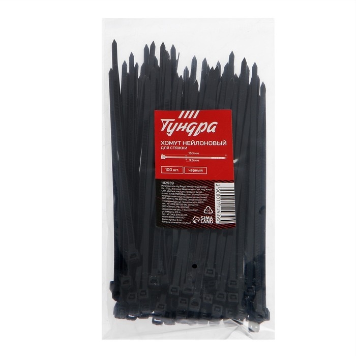 Хомут нейлоновый для стяжки, ТУНДРА, 3,6х150 мм, черный, 100 шт