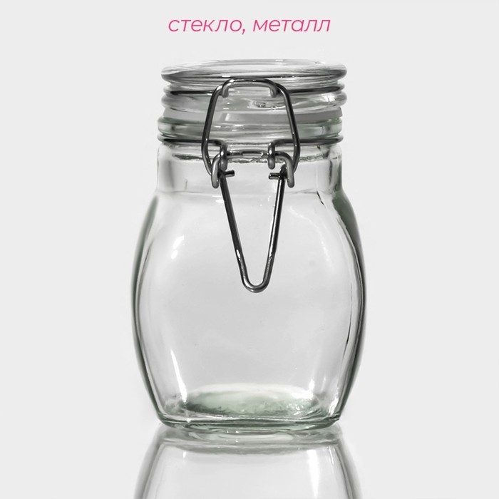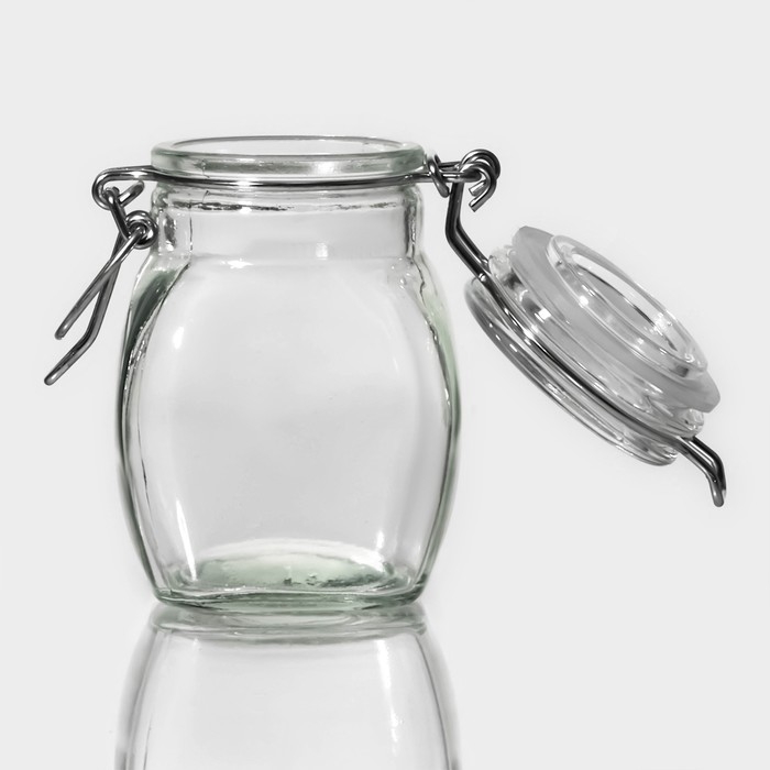 Банка для хранения сыпучих Доляна «Овал», 100 мл, 5.5×9 см, с бугельным замком, стекло