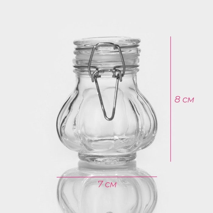 Банка стеклянная для хранения сыпучих продуктов Доляна «Чеснок», 100 мл, 7×8 см, с бугельным замком