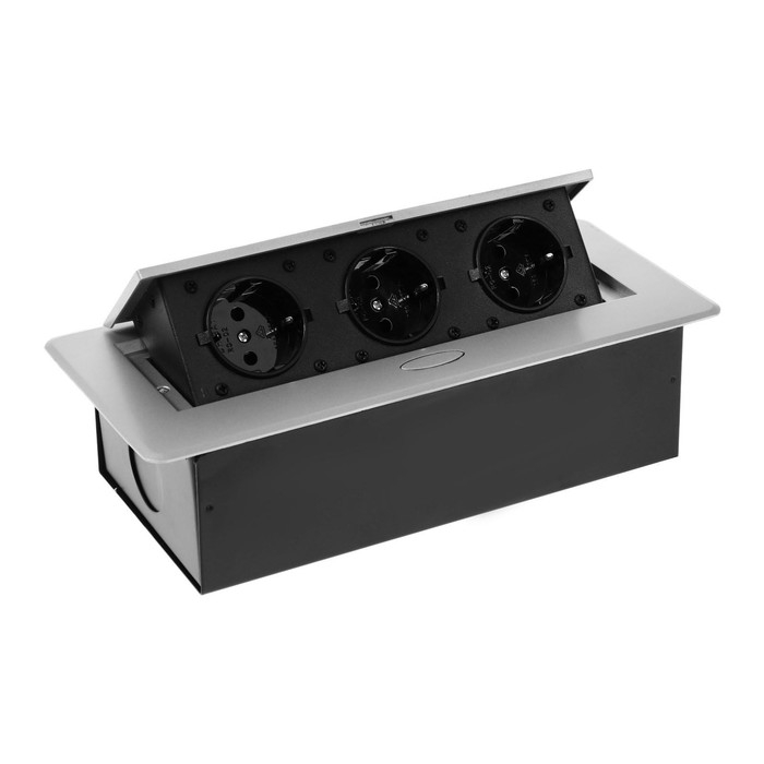 Блок розеточный в стол, сдвижная крышка, 10А, 3 розетки, провод 1.8 м, серебристый