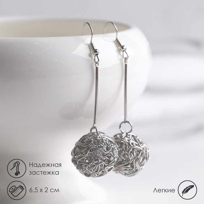 Серьги висячие «Шарик» переплетение, цвет серебро, 6,5 см