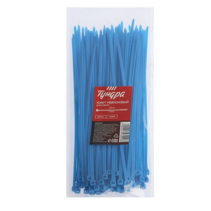 Хомут нейлоновый для стяжки, ТУНДРА, 3,6х200 мм, синий, 100 шт